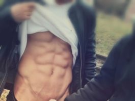 Big-Cock Latin Hunk Jerks Off in Bathroom
